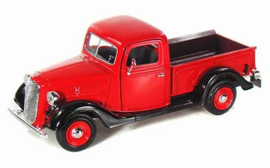 Yearning for a throwback pickup ride? Jump on the rugged 1937 Ford Pickup Truck and experience the ride of a lifetime on a classic half-ton machine. Red in color with wonderfully detailed vintage styling, this ’37 Ford Pickup is a no-frills, all-purpose pickup that will gladly haul or carry anything you throw at it. This 1/24 scale diecast 1937 Ford Pickup is an extremely rare half-ton pick truck, a great addition to any classic car or truck collection. Doors and hood are openable and details are magnificent.