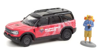 You’ll be blown away by this brilliant suv from Greenlight! This Off-Roadeo Adventure Support Truck 2021 Ford Bronco Sport Badlands with Backpacker is a 1/64 scale model replica. It comes in red and features real rubber tires, detailed exterior, metal body and chassis, comes in a blister pack. It’s an excellent addition for any suv collection, and wonderful for unwavering Ford lovers!